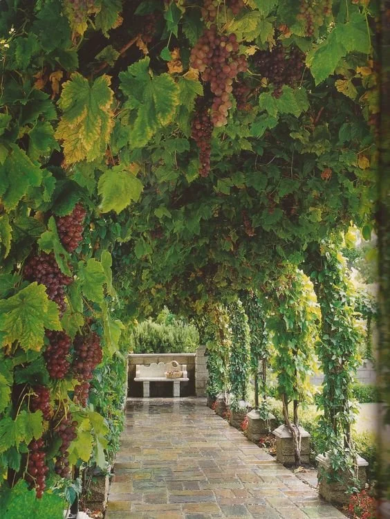 Perpendicular to the pergola, a water feature connects the existing gate, creating two axes that connect and organize the space.